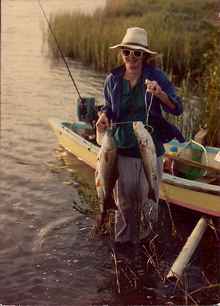 I remember one really fine Fall day spent sitting on the boat cooning and shucking oysters while my wife fished for Reds nearby. Toward evening I traded shell knife for shotgun (an old Lefever 16 gauge) and took a few Rails from the surrounding Mangrove swamp. We rowed back home right at sunset and had a feast.