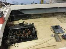 I was out doing "other things" today. Boat work got shoved a bit to the back burner. Anyhow, we do have an impressive pile of fiberglass dust, splinters, and chunks to show for the old vinyl covered and padded dash board. There is a shaped header under the foredeck to hold things up better.