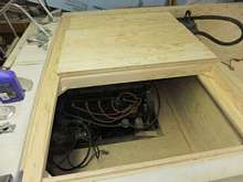 But, it seems to be both solid and stable. This is with the hatch "blanks" just set in place. One day they should have hardwood overlay and either hinge or lift out or maybe both.