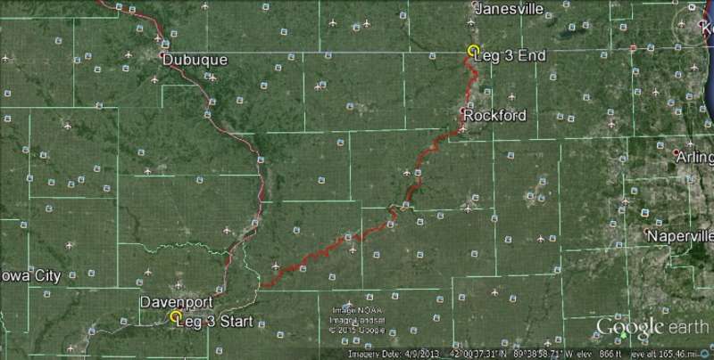 Leg 3: Davenport, Iowa to Beloit, Wisconsin (155 miles)