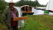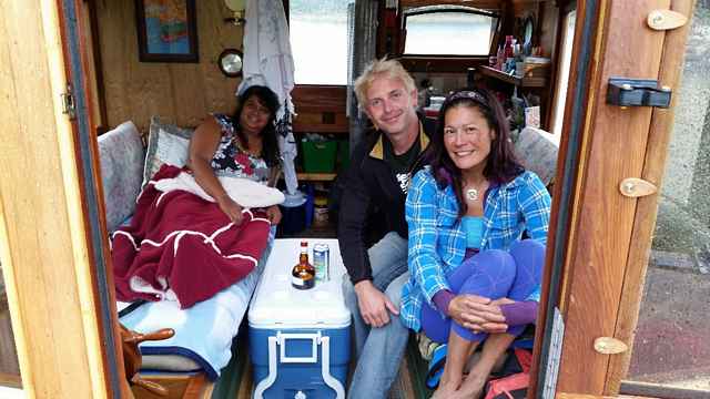 Then there was the “Mothership” and her baby. Roy and Dianne brought their houseboat “Dianne’s Rose” as well as Roy’s latest design “Thorn” – every rose has a thorn I guess … but this one is as beautiful as the rose. Now I’m not much of a powerboat guy but I have to say this houseboat design of his is one that I really like. Lots of creature comforts like a woodstove for when it’s cool, large opening windows for when it’s warm and you can basically run it right up onto the beach! I think he was running a 9.9 hp outboard on it – complete with wheel steering from inside. Very cool.