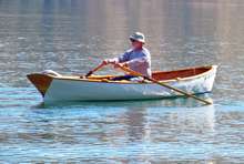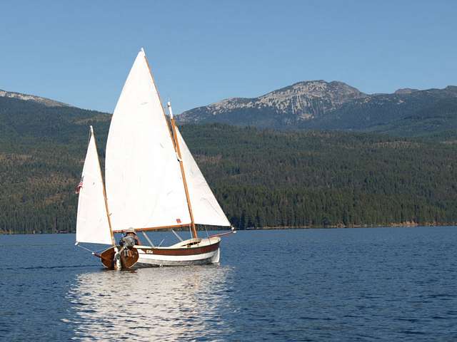 Joel Bergen and his Welsford Navigator, Ellie, off Cavanough Bay, Priest Lake