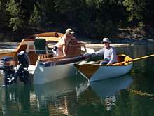 Tom Vetromile and his Klamath utility skiff, lunch stop, Kalispell Island, Priest Lake
