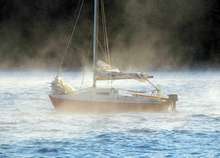 Dan's Lady Bug, anchored out on a cold morning, Priest Lake.