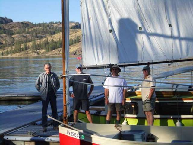The Eastern Washington Moveable Messabout, held Sept 10-16 of 2014, began in western Idaho and continued through several eastern Washington locations.  This unique event, organized by Dan Rogers, included various types of boats captained by people from British Columbia, Washington, and Idaho, with one crew flying up from Texas., 11 of us overall.  The plan was to camp, go out on the water, then after 1-3 days move to another site down the road and repeat the process.  A few campsites were reached by water.  Dan came up with the route, surveying each stop beforehand and setting up eating, camping, and vehicle viewing arrangements along the way.