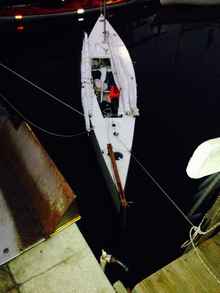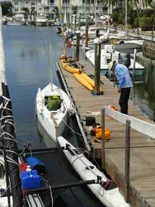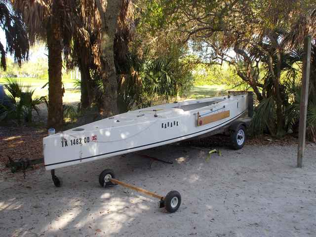 Although the boat performed well in the EC, John says, "I've decided to retire it. What I've decided is that it's too uncomfortable. It sails great, although I never did put up the light wind sails. There's not enough room in there to move around and to put things and have things and whatever else available."