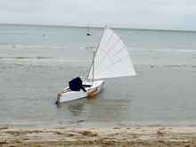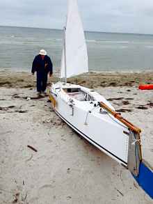 "We just went to the pass outside of the channel and pulled the kayak up on the bank. I took off down the shoreline and probably about 100 yards past the pass, the boat was sitting there, the sail still up. The swell had pushed up up on the bank a good ways and the waves were still running up the beach lapping under it. The leeboards were down and the rudder was down, but it didn't damage anything. Everything was the way I left it."