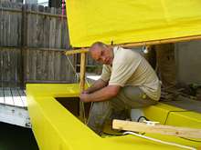 This ugly guy, Andy Linn I think, made the sails for us! This is him figuring out how to rig the boat. |