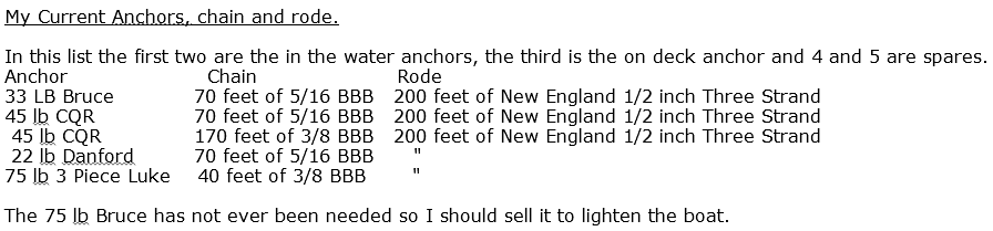 My Current Anchors, chain and rode:
