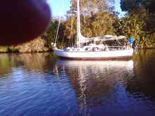 My old CNN 32 with two anchors in the canal and a line to a tree on the bank. The location is about 1/8 mile from the Indiantown, Flordia marina.