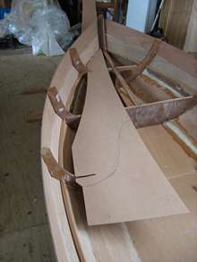 Fitting a seat against the side of the boat, or a bulkhead into the hull, or any other of the myriad parts of a boat that can't be measured with a set square and ruler is for most a matter of trial and error.