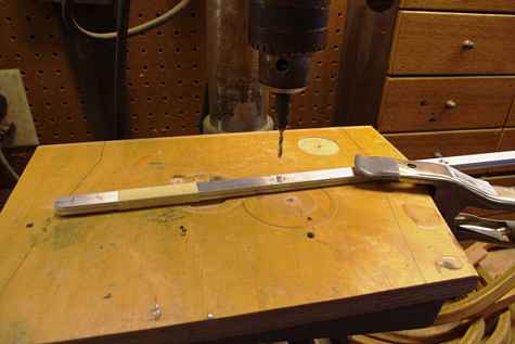 I started by marking out where the trunk logs are located and then marking those screws so I don't hit them when drilling for the gasket strips. I chose 1/2" aluminum strip that is 1/8" thick for the strips, and 1/2" X 6 stainless screws to hold them down. Of course part of the job was drilling and countersinking the aluminum strips for the screws - easy enough with the aluminum. The sail cloth was cut to 3-1/4" wide in my instance, and folded in half lengthwise to double it up. The fold goes to the inside of the slot. That puts the cut edges under the aluminum strips. I overlapped the gaskets about an 1/8" over each other in the center of the slot. At the back end of the slot the gaskets are cut at a 45 to leave a little triangle cutout there - the idea is that something of a venturi effect is created when the boat is moving to suck water out of the trunk. Even though the board went up and down with no binding whatsoever, I cut a small slot across the width of the slot at the front of the board to close up that gap a little when the board is deployed. The screw holes going through the sail cloth were made with the point of a nail heated up on a propane torch, and the sail cloth was cut with a new utility knife blade in my knife heated on the same torch. This is to seal the edges so they don't fray. I glued the sail cloth to itself where it is folded lengthwise so there is no space in between that fold that could balloon and fill with water and create unwanted drag.
