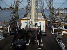 We emerged from the bowels of the ship onto the afterdeck. Jamie pointed out that the furniture there was reproduced at great cost. |