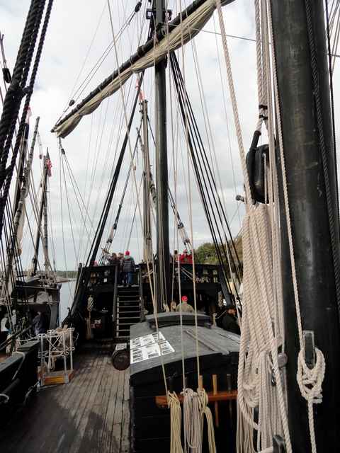 Looking forward on Pinta from the raised stern deck. Somehow I think that stairway was more ladder like on the original. |