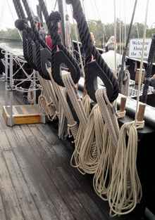 Some of what seems like miles of line used in the standing and running rigging. |