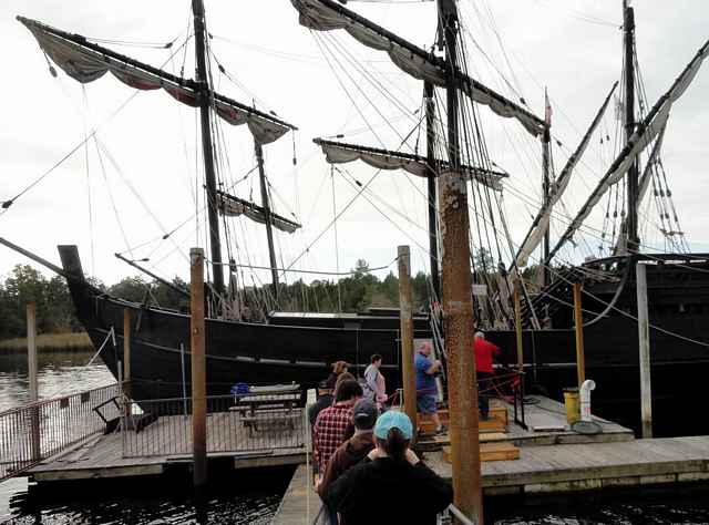 Walking to the Pinta (Nina is on the other side) to begin the guided tour). |