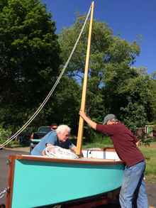 After a few hours spent rigging the Ladybug, re rigging and yes, rigging again, we finally sorted the sail rig out. Lest anyone get worried, the Ladybug rig is as easy as pie. It was all our fault. Could we have been joking around too much? I couldn't possibly comment. The fellows found that my little homemade Harbor Freight trailer needed some serious adjustment to properly carry the precious 'Bug. They went way above and beyond, essentially rebuilding it. I pretty much had a new trailer! I couldn't be more grateful, and I think of those nice men every time I look at it. That's quite a lot since the boat has spent a wonderful summer being sailed almost daily, and the trailer is in my driveway waiting for the sad "boats out" time later this fall.