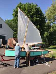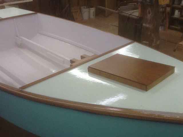 The only time he questioned my thoughts was as we picked colors. I wanted Interlux Seafoam Green on the sides, and the leeboard to be painted the color of Hollandaise sauce. Being a New Hampshire man, that seemed kind of sissified to him. I couldn't blame him, but this was to be a "girl boat". Greg painted the boat the way we wanted, even mixing the Hollandaise sauce leeboard paint himself.
