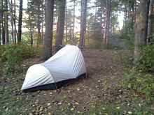 On my weekend trip, I got a late start getting to the launch site but was able to quickly find a large campsite in a small bay nestled in a stand of tall red pines. Because of the shallow draft, I could land directly on the beach and unload the boat.