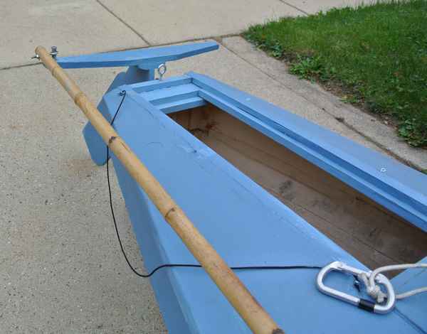 There are several traditional methods used to control the rudder in a sailing canoe including a continuous rope system with pulleys or pedals. I used a bamboo pole attached to the rudder yoke that acts as a Norwegian push-pull tiller. The system is responsive, can be operated from any position in the boat, and yet does not get in the way if I need to paddle the boat. While I have not taken the boat on any major rivers yet, I suspect that the rudder would be very useful in these kinds of conditions.