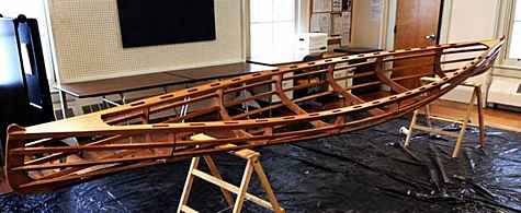 Henry Rushton was an iconic American canoe builder in the late 1800's, and this is another of my SOF adaptations of one of his designs - the 16' {4.9m} IGO. Looks like they are doing a great job, and that it's just about ready to be skinned. Massachusetts class taught by the highly skilled Craig Addis.