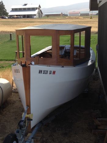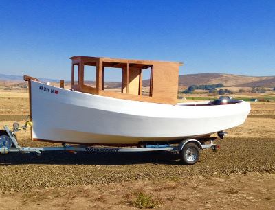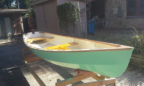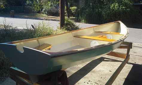 It's 14' row/sail skiff that I drew up. Well, if I can manage to sand and varnish the trim and spars, stick down some floor matting and screw everything back together, I might have a pretty complete boat for Port A.