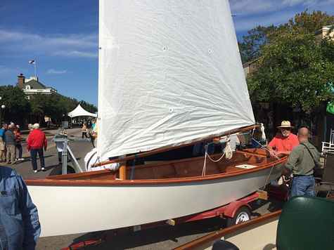 Beautiful new Goat Island Skiff built by Brad Indicott (Lenoir, NC) on display at the Georgetown Wooden Boat Show!