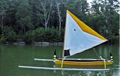 My version of a Perahu Katir - a style of Jukung from NE Java. Google the boats of Pasir Putih for pics of the originals. Mine is smaller, and skin-on-frame rather than dug out of a log. The outriggers, however, are of giant bamboo, as is traditional. Turns out there's a patch of it here.