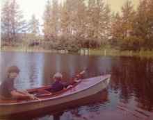 The Cayat was a fine boat and it did take me on adventures. At 16' long and well over 100 lbs it was just too big and heavy for a skinny runt kid to handle on the ground and too big to tow behind a bicycle. It only got used when there was someone to help me. A 30 lb Sea Scout would have been used far more often. Recently, I was looking through old photographs and came upon a picture of me paddling the Cayat circa 1970. That lead to going through old boxes of books searching for the Scout Annual. There was still a bookmark on the page with the plans and I thought, "why not?" The build was quick and uncomplicated. All joints are lashed together with artificial sinew. The frame is coated with polyurethane varnish. The vinyl skin is stapled on the gunwales and glued at the stems. After the skin is attached it is shrunk with a heat gun to remove any wrinkles. The maiden voyage found me in the middle of the lake floating surrounded by sticks and tablecloth. I am sure somewhere up above Mum was shaking her head and Father was grinning from ear to ear. I know the kid in me was.