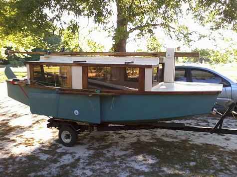 Launched the Michalak IMB today. Gary Blankenship and I took her out at St Marks, FL. Great day. Took a lot of adjusting the rig to dial in the helm, because I deviated from the plans and moved the mast out of the cabin onto a tabernacle. Finally, after three resets we got it just right. The boat is surprisingly quick and points very well. A snappy tacker too! Heres a short video of Gary at the helm after I got the sail dialed in. Still a lot of finish work to do inside the cabin, but the hard parts done.