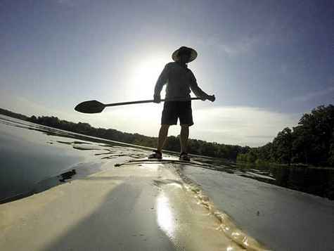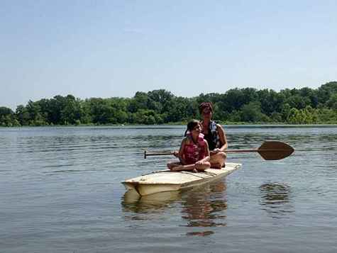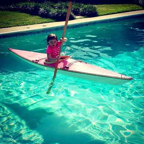 It's been some time since I've splashed a boat, but here are a couple we put in the water recently. One is my daughter's Kidyak Kayak, designed by Dave Gentry and the other is also a design by Dave, his Lanui skin- on-frame stand up paddle board. My daughter's kayak was first tested out in the in-law's pool and then fully splashed with my SUP at the Stockton Lake Messabout, here in SW Missouri.