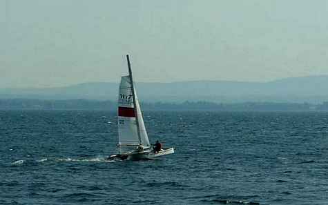 Pathfinder ohboyohboy grinning shroud-to-shroud after her first outing with all sails flying, on Lake Monona, WI.